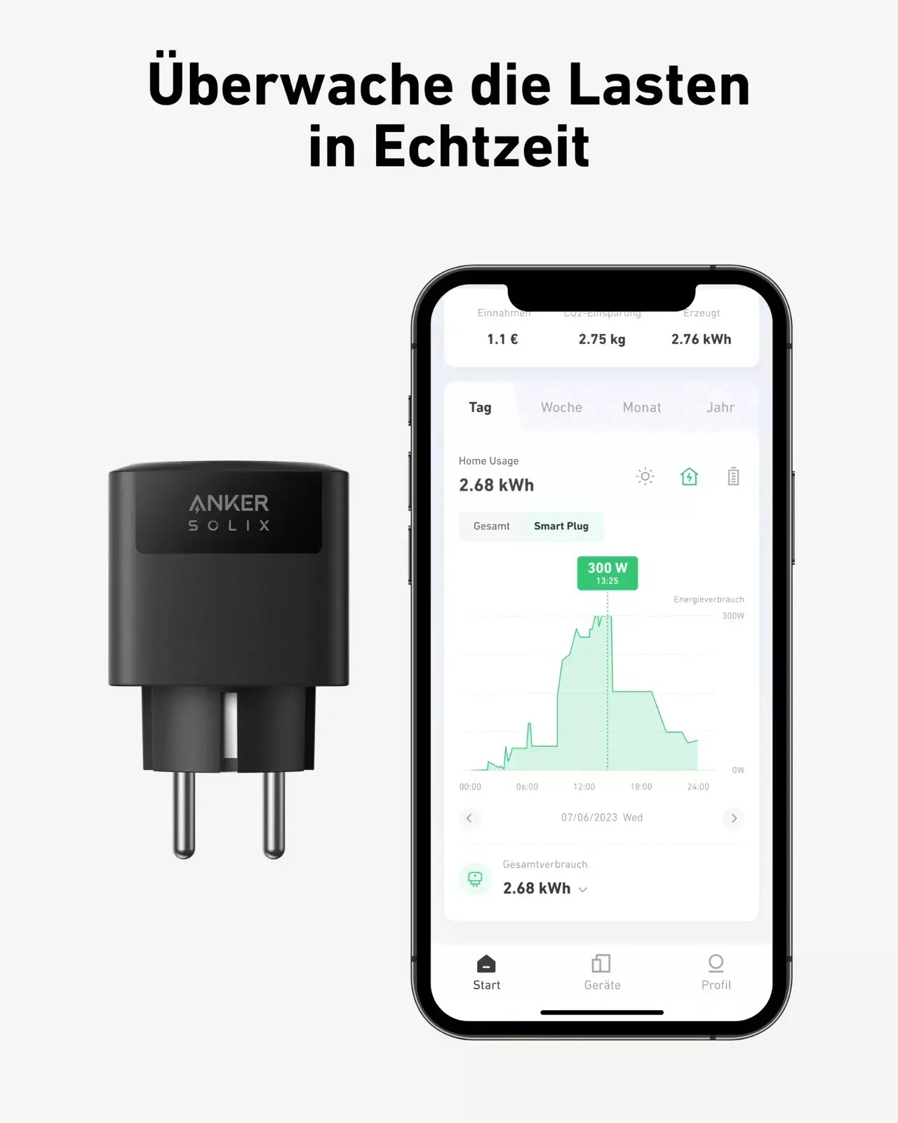 Der Anker SOLIX Intelligenter Smart Plug ermöglicht die Echtzeitüberwachung des Stromverbrauchs deiner Geräte. So kannst du Energie gezielt freisetzen und Verschwendung vermeiden, indem du Lastspitzen erkennst und steuerst.