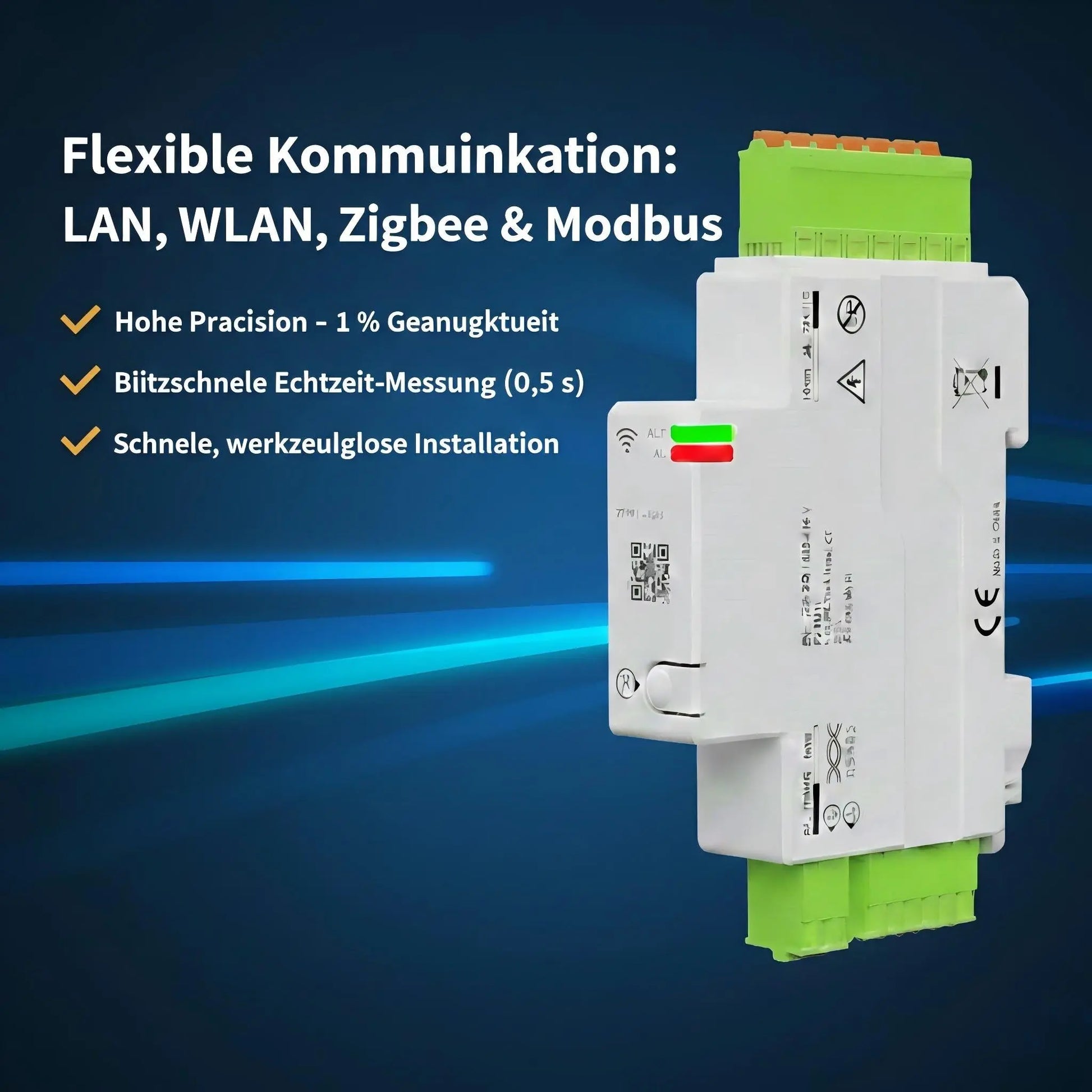 Präzise Messung: Hochgenaue Erfassung von Spannung, Strom, Leistung und Energie (Toleranz 1%).