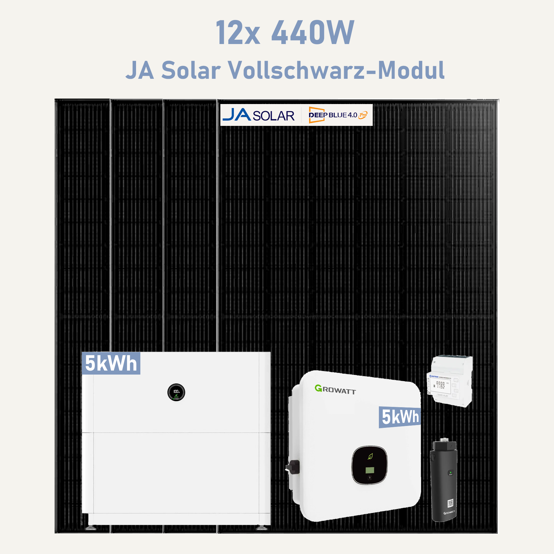 Growatt MOD TL3-XH2 5KW Hybrid-Wechselrichter, 5kWh APX Solarspeicher, 12/24 stücke 440W JA Solarmodule, 3-phasig