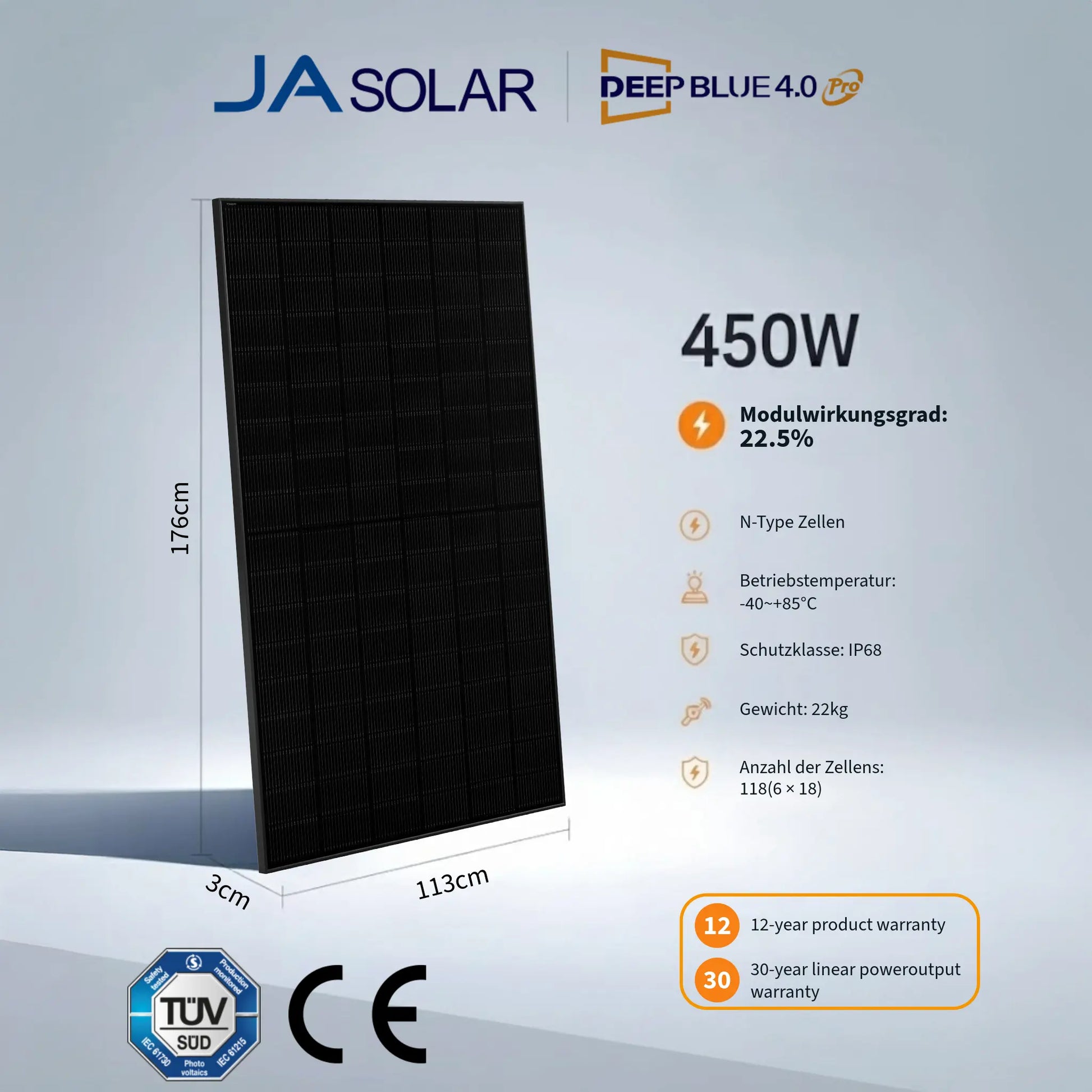 3. JA Solar N-Typ Bifaziales Glas-Glas Modul – 450W | 22,5% Wirkungsgrad
