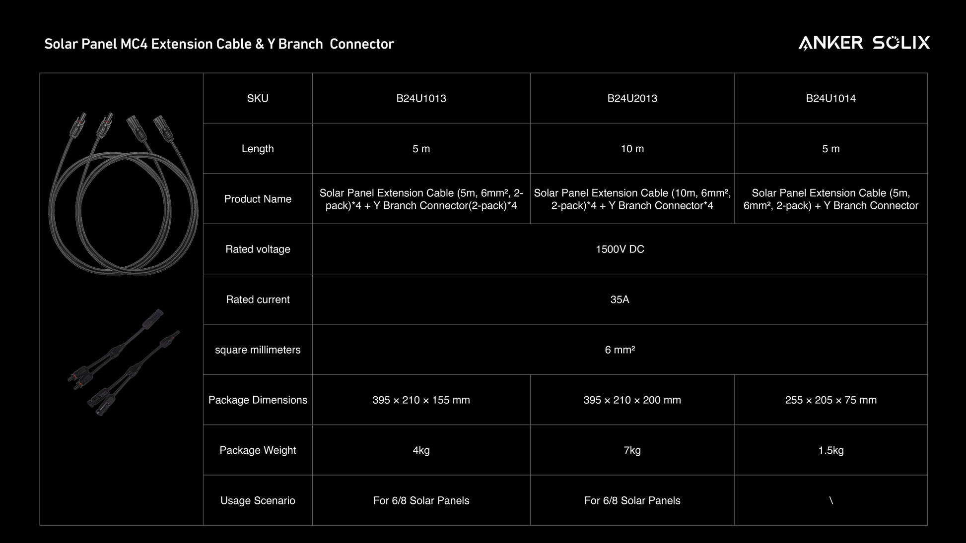 Anker Solarpanel Verlängerungskabel 5m 6mm² mit Y-Stecker 2er Pack für Solarmodule