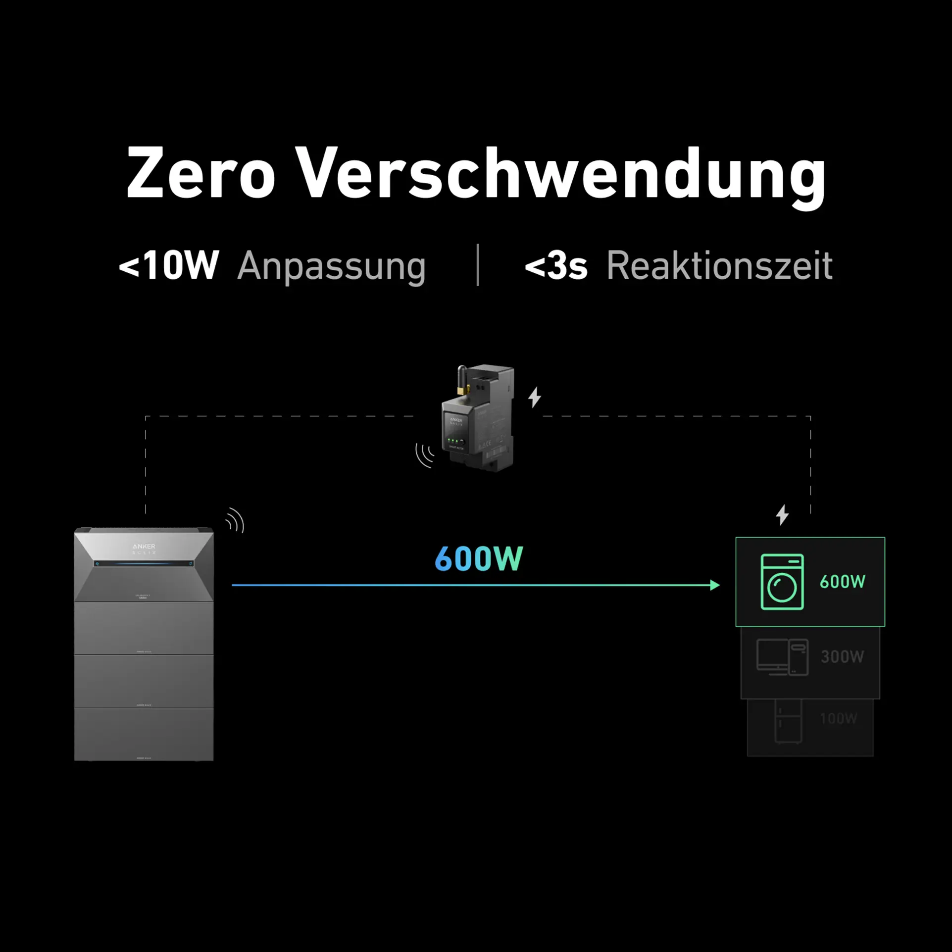 Wenn neue Leistungsanforderungen erkannt werden, reagiert die Solarbank 2 AC innerhalb von 3 Sekunden und passt die Ausgangsleistung mit einer Genauigkeit von ±10W an.