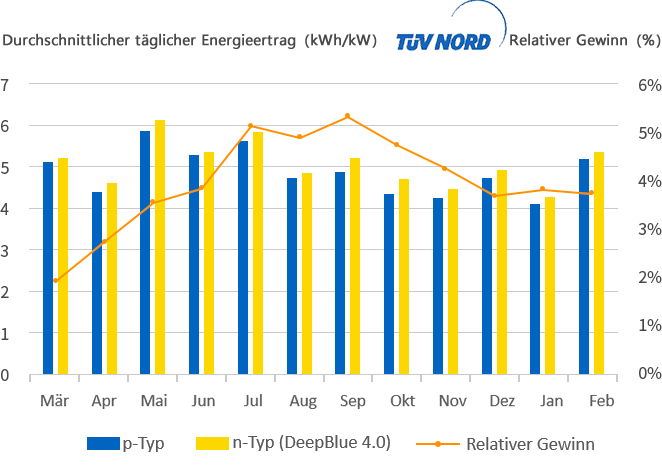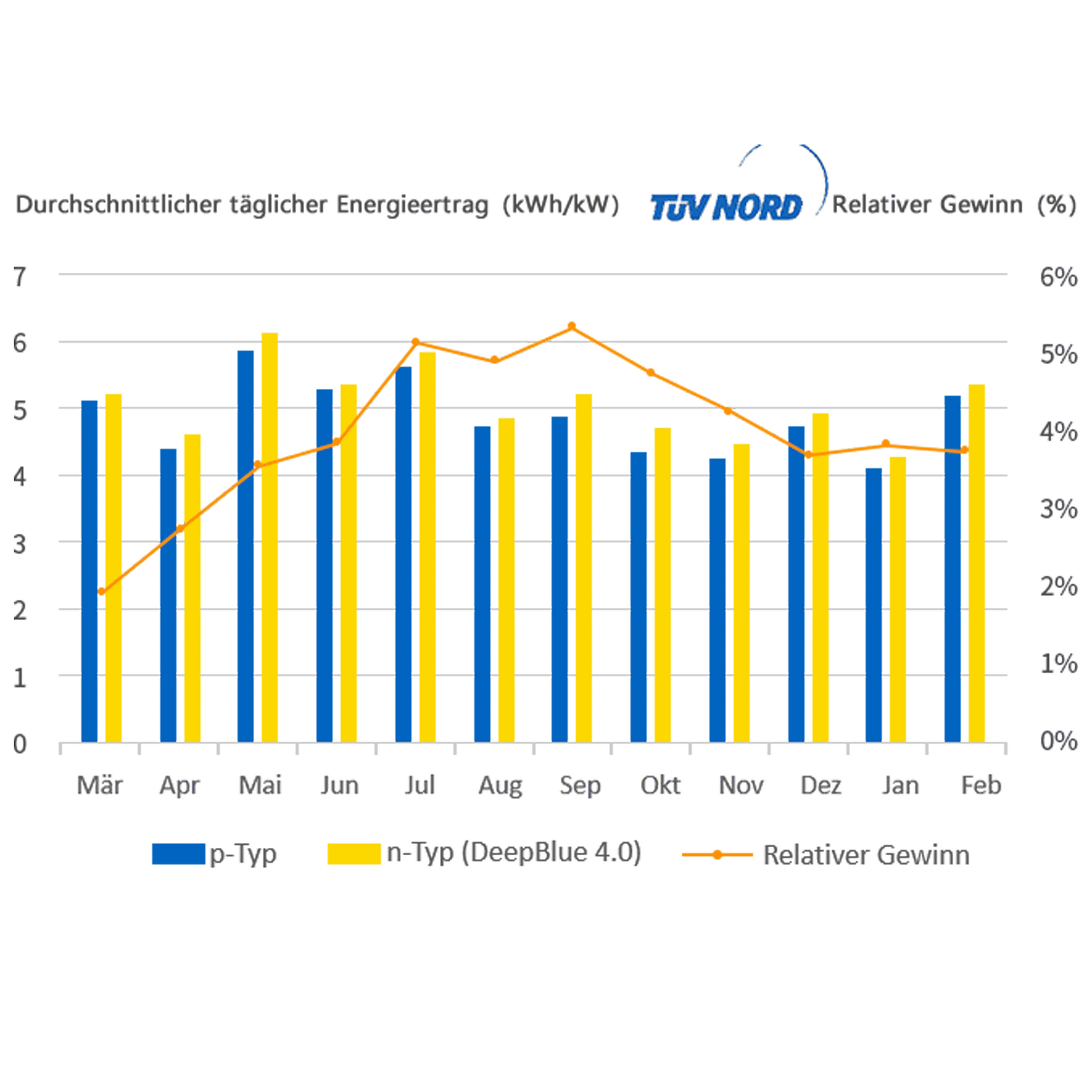 - Geringer Temperaturkoeffizient, optimale Stromerzeugung bei allen Wetterbedingungen
