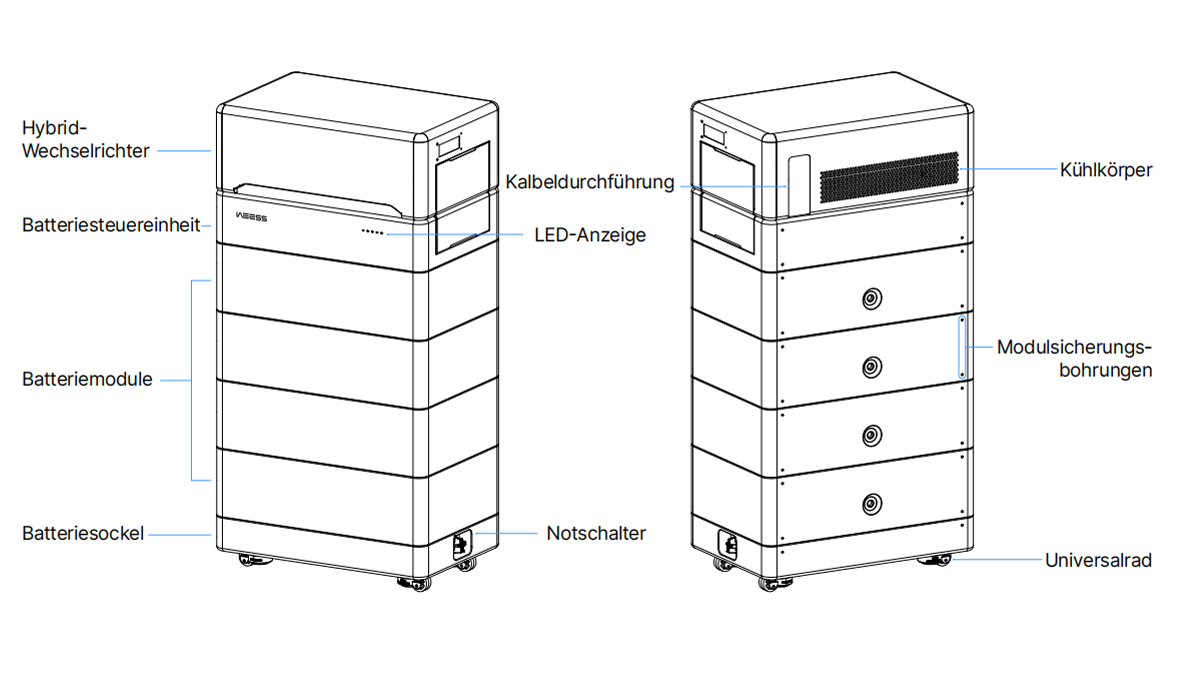 - Energiekapazität: Variabel von 10.32kWh bis 20.48kWh, abhängig von der Anzahl der Batteriemodule